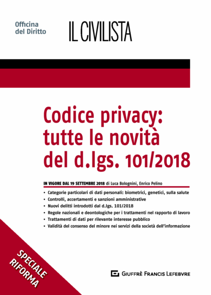 L’opera rappresenta una prima lettura delle novità introdotte dal d.lgs. 101/2018 che ha adeguato la normativa nazionale (cd. Codice privacy) al mutato quadro della disciplina europea in materia di protezione dei dati personali. In appendice la tabella di raffronto tra il nuovo e il vecchio testo normativo del d.lgs. 196/2003 consente di riassumere e catalogare l’insieme delle modifiche introdotte. Sono trattati in particolare: Categorie particolari di dati personali; Controlli, accertamenti e sanzioni amministrative; Nuovi delitti introdotti dal d.lgs. 101/2018; Regole nazionali e deontologiche per i trattamenti nel rapporto di lavoro; Trattamenti di dati per rilevante interesse pubblico; Validità del consenso del minore nei servizi della società dell’informazione.